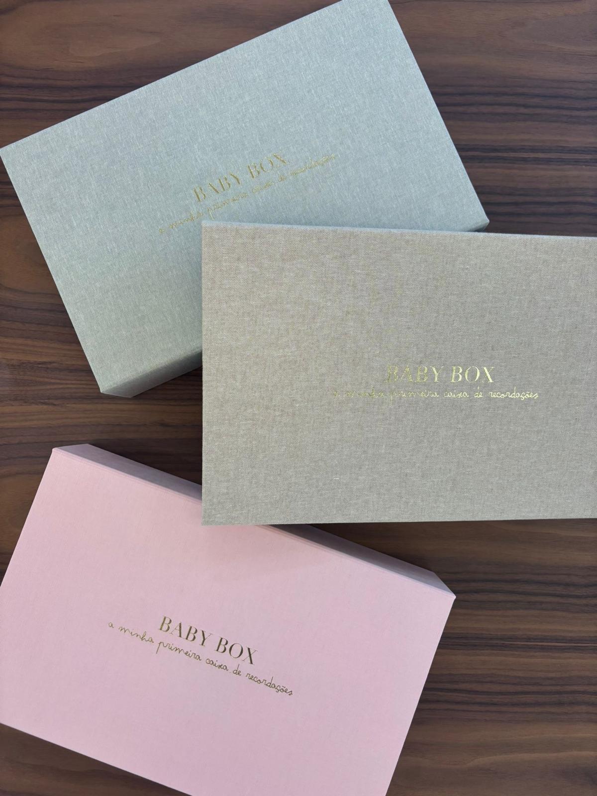A Baby Box – A Minha Primeira Caixa de Recordações é totalmente forrada em linho, disponível em quatro cores intemporais e delicadas: